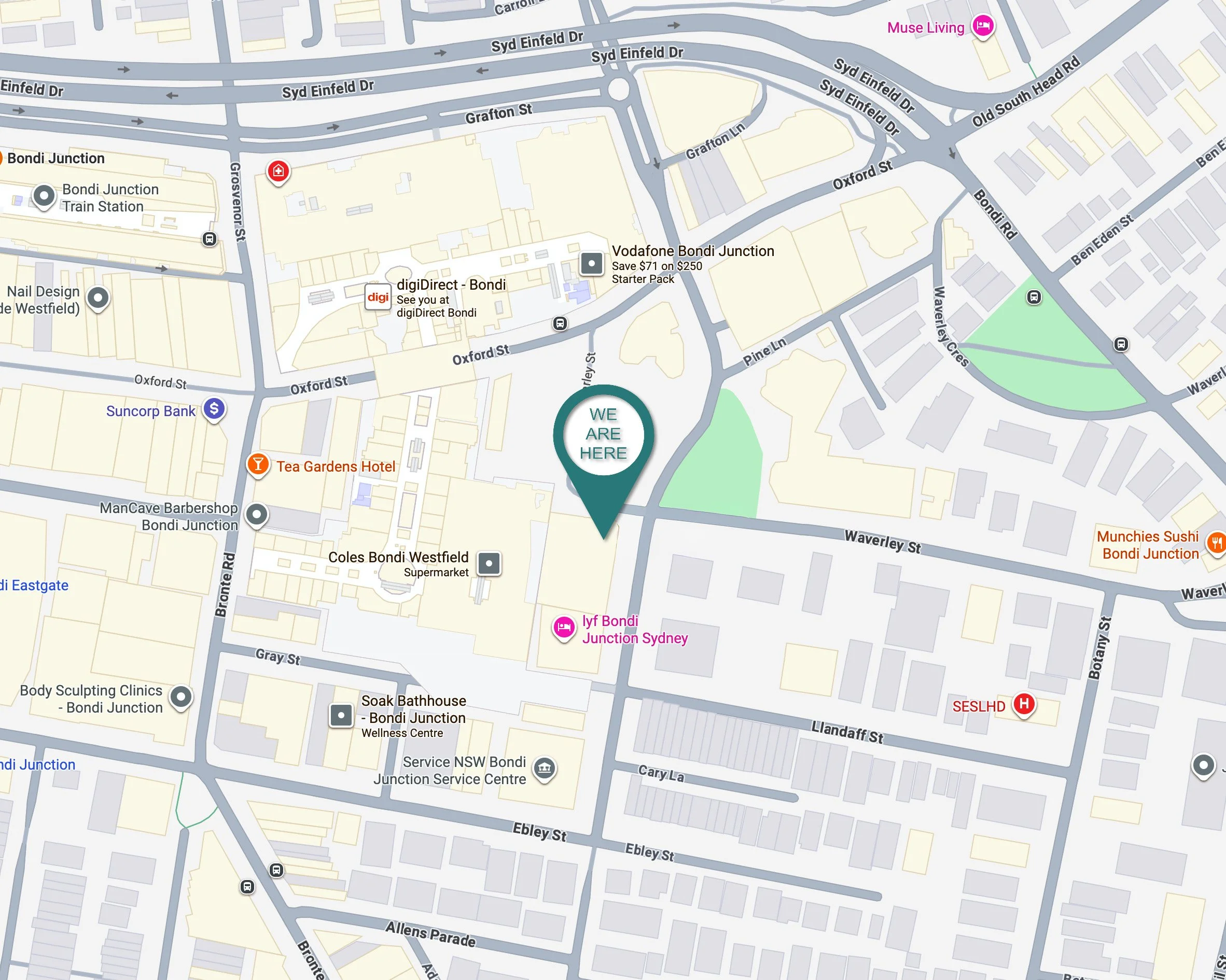 We’re located close to Westfield Bondi Junction, with easy access to public transport and nearby parking.